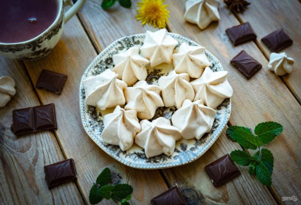 Готовые безешки отлично отходят от пергамента. Выложите их на тарелку и подавайте к столу.