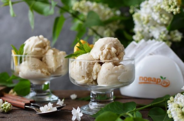 Мороженое готово! Ложкой скатывайте шарики и подавайте в креманках.