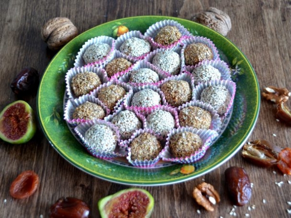 Выложите готовые конфеты в бумажные капсулы и можно подавать их к столу. Такие вкусные и полезные конфеты понравятся и детям, и взрослым.