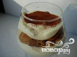 Добавить второй слой крема. Затем второй слой печенья. Затем окончательный слой крема. Наконец, посыпать слоем какао-порошка.