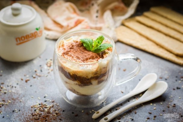 Слои чередуем. ПП тирамису готов к подаче. Украсить десерт можно мятой и какао.