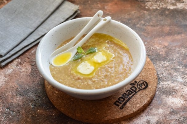 Добавьте в кастрюлю сливочное масло и перемешайте. Кашу разложите сразу же по тарелкам и подавайте к столу. В тарелку также можно добавить орехи, сухофрукты, ягоды или дольки яблок.