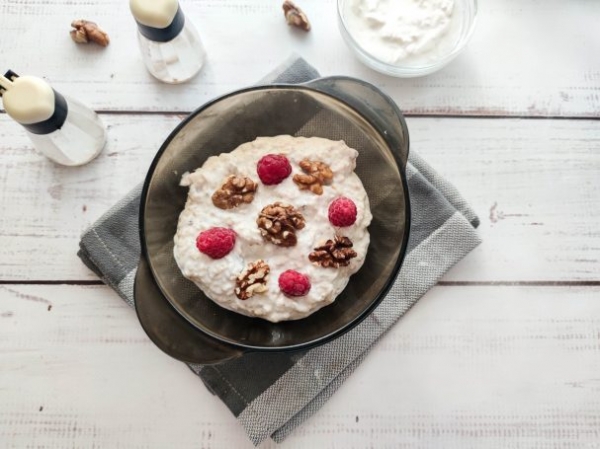 Запаренная овсянка на завтрак для похудения готова. Приятного аппетита!
