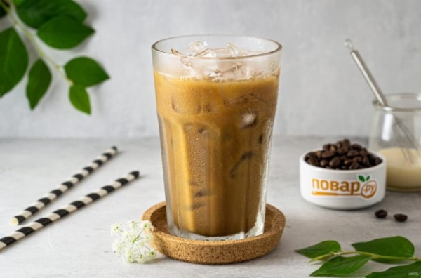 Заполните стакан льдом. Затем влейте холодный кофе со сгущенкой.