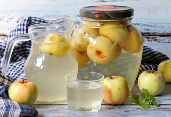 Для компота подойдут любые яблоки, но от их цвета будет зависеть и цвет компота. Из зеленых и желтых яблок компот получится практически белый, а вот из красных яблок, он приобретет красивый розовый цвет. Количество сахара можно увеличить, и тогда компот можно будет разводить кипяченой водой или газировкой.