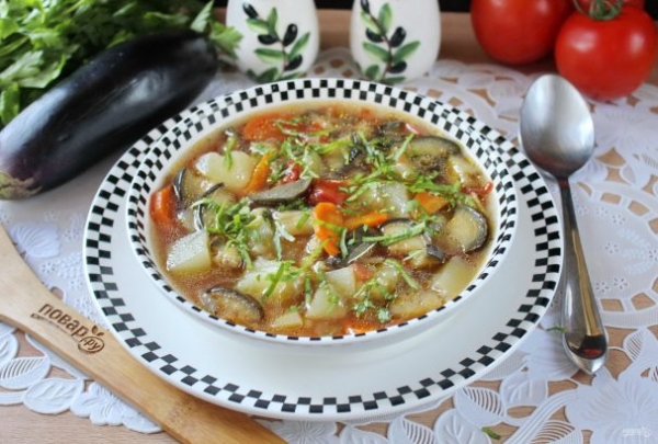 Армянский суп с баклажанами готов. Подавайте на обед.