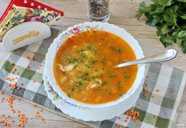 Блюда из чечевицы невероятно популярны и полезны. Особенно распространены чечевичные супы и похлёбки. Ведь этот вид семейства бобовых обладает целым рядом качеств и нужных человеческому организму веществ. Предлагаю для супа использовать красную чечевицу. Она насыщена растительными белками, способствует обмену веществ, укрепляет иммунитет да и готовится быстрее остальных видов. Фарш для супа берите на своё усмотрение, в зависимости от предпочтения ваших домашних. А остальные ингредиенты традиционные. Суп готовится просто и быстро. Берите на заметку!