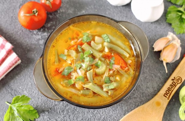 Помимо сельдерея добавим в суп свежие овощи и получится яркое и витаминное блюдо для любого повседневного меню. У меня постный вариант, но можно приготовить суп и на любом мясном бульоне по желанию. Это простое и аппетитное первое блюдо, будет актуально для всех, кто внимателен к своему здоровью и следит за питанием. Советую попробовать! Такой рецепт невозможно не оценить!