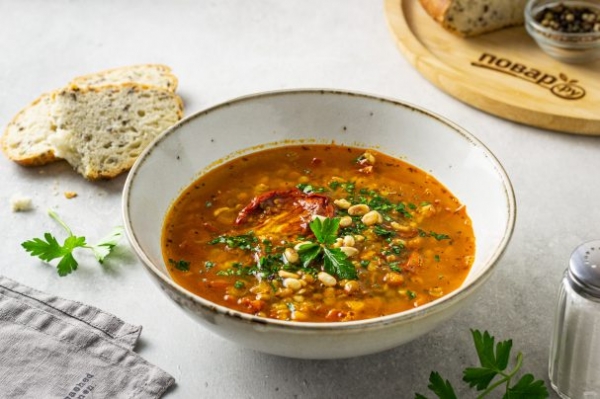 Суп "Невесты" — традиционное блюдо из турецкой кухни. Он готовится на основе красной чечевицы и булгура. Такое сочетание делает суп густым и сытным.