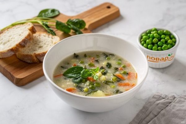 Суп со шпинатом и зеленым горошком
