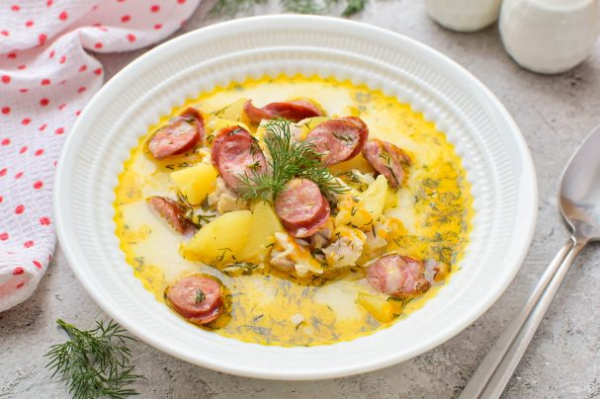 Сырный суп с копченостями