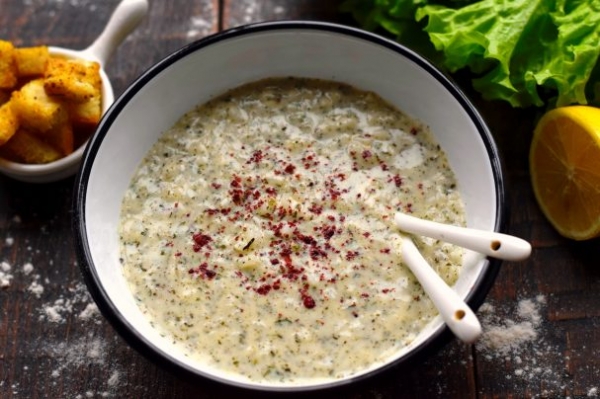 Йогуртовый суп "Яйла" — традиционное блюдо турецкой кухни. Готовится на основе густого турецкого йогурта, обязательно добавляется сухая мята, пропитанная сливочным маслом.