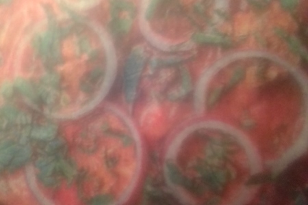 Кусочки мяса перемешиваем с аджикой и колечками лука. Оставляем мариноваться минимум на час. Выкладываем в казан с разогретым маслом. Через 20 минут засыпаем нарезанные помидоры и болгарский перец, очищенный от семян чили и пропущенный через пресс чеснок. Приправляем соусом и специями. Тушим на медленном огне 40 минут. Подаём с рубленой зеленью.