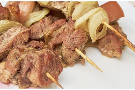 Шашлык из грудинки и свиной вырезки в духовке