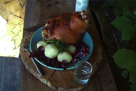 Запекайте рульку в духовке при температуре 220 град. 15-17 мин. до образования румяной корочки.
