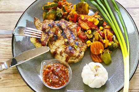 Подавать с обжаренными овощами.