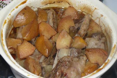 Свиные ребра в духовке с айвой и яблоком