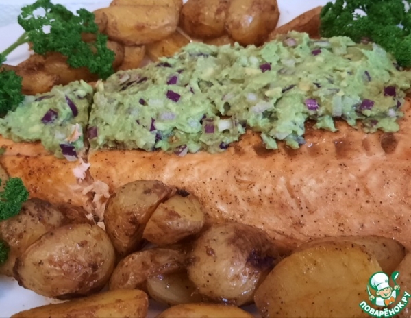 Рецепт «Нежное филе лосося с топпингом из авокадо»: