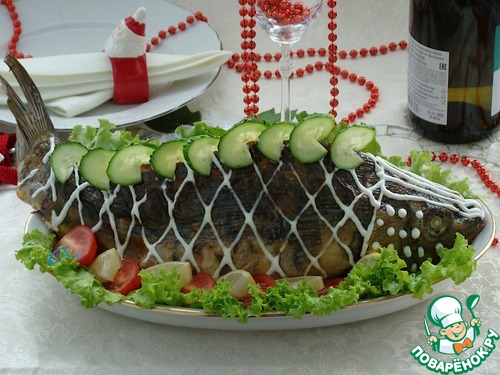 Установите карпа на противень и поместите в разогретую до 160 — 170 * духовку, примерно на 40-50 минут. (ориентируйтесь на свою духовку).