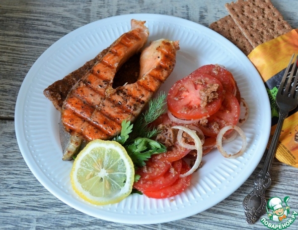 Рецепт «Сёмга с хлебцами-гриль и томатным гарниром»: