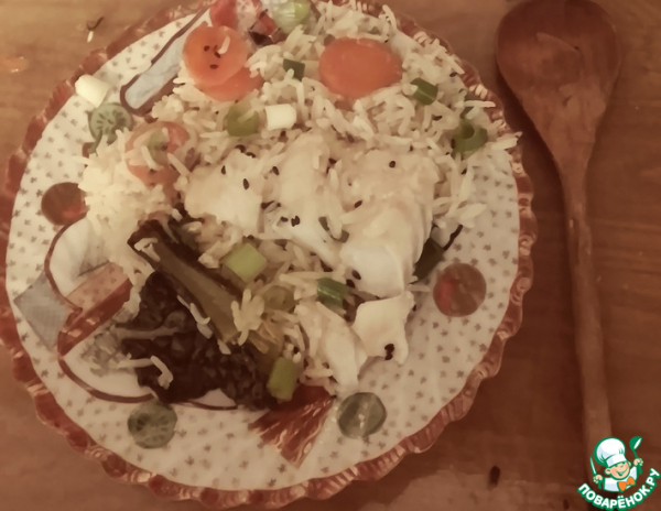Рецепт «Треска с имбирной зеленью, морковью, рисом»: