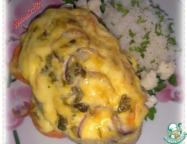 Стейк трески запекается между слоями моркови в сочетании с плавленным сыром, отварным яйцом, сладким луком и петрушкой. Полноценное горячее блюдо порадует Вас своей сочностью и нежностью, а также послужит достойным украшением праздничного стола. Угощайтесь с удовольствием, дорогие Поварята!