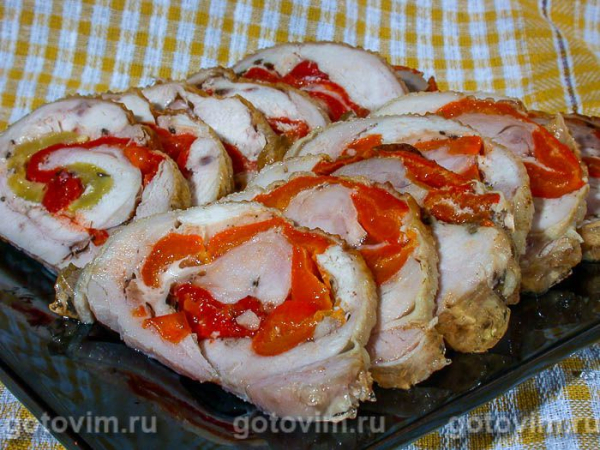 Куриный рулет со сладким перцем — рецепт из курицы, запекают в духовке