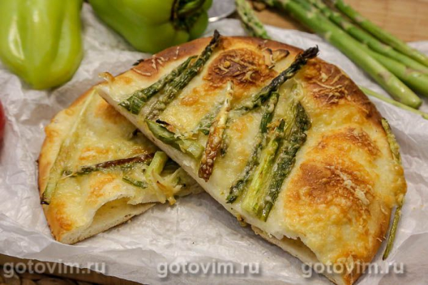 Для приготовления пиццы вам потребуется: для теста: вода — 100 мл молоко — 100 мл мука — 300-350г масло растительное — 2 ст.л. дрожжи (сухие) — 7г (2.5 ч.л.) соль — 1/2 ч.л. сахар — 2 ч.л. для начинки: спаржа зеленая — 100-120г чеснок — 1 зубчик масло растительное — 3 ч.л. соль — по вкусу сыр моцарелла — 100-125г сыр твердый (пармезан или похожий) — по вкусу. Рецепт пиццы: