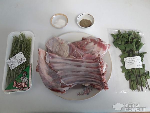 Рецепт: Барашек на подушке из розмарина и мяты — Рёбрышки барашка на подушке из розмарина и мяты Запечённый в духовку