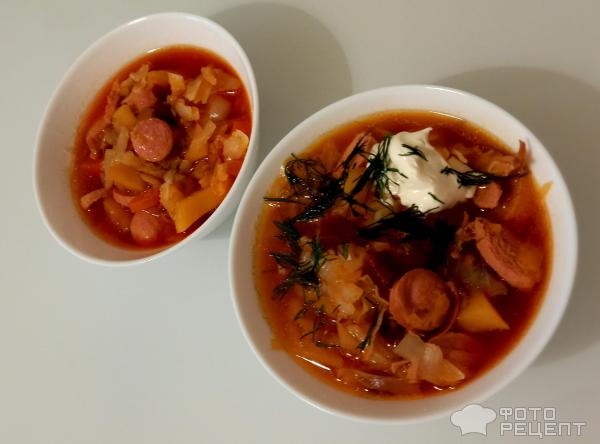 Рецепт: Борщ по-львовски — «Борщок из свёклы с ветчинкой и с сосисками». По Чехову.