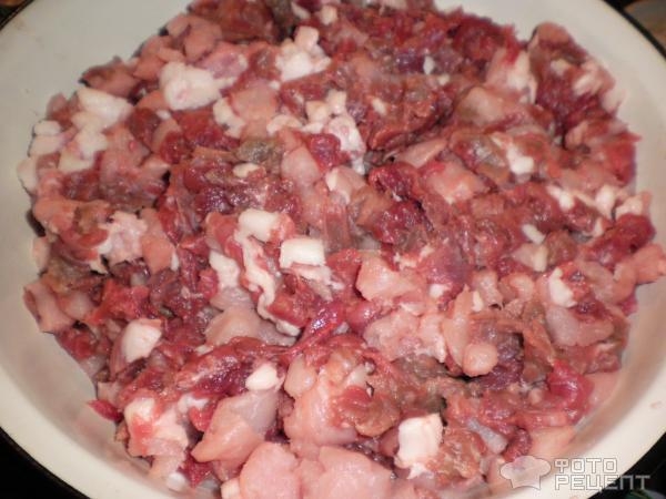 Мы с мужем любители поесть не только вкусно, но и обязательно что-нибудь домашненькое, вот и колбасу я тоже частенько делаю сама, это намного вкуснее и полезнее, чем покупная колбаска. Муж любит, что бы колбаса была из рубленного мяса, поэтому я как хорошая жена сижу и потихоньку подготавливаю мясо, в этот раз у меня была колбаска из свинины, говядины и свиного сала, вот рубленное мясо готово,