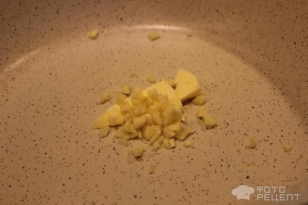 Лук также выкладываем в сковороду и еще раз добавляем сливочное масло, ровно столько же, сколько кидали к чесноку.