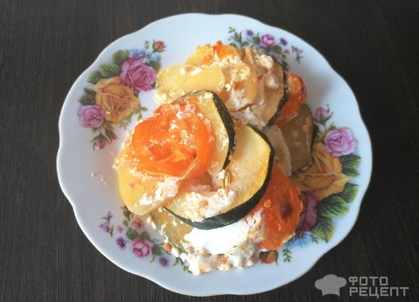 Рецепт: Легкая овощная запеканка — из кабачка с картофелем и томатами «в духовке»