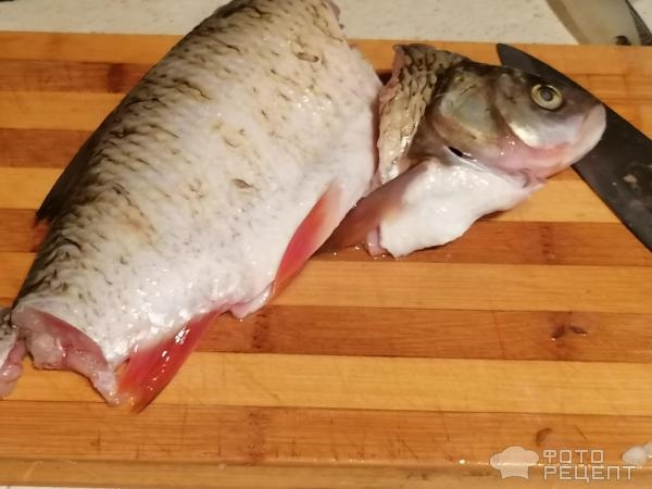 Сначала занялась тушкой язя. Вымыла, очистила от чешуи и внутренностей. Отрезала голову и хвост, оставила на уху.