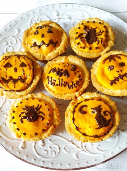 Рецепт: Тарталетки с тыквой. Встречаем Хэллоуин — и шоколадным рисунком