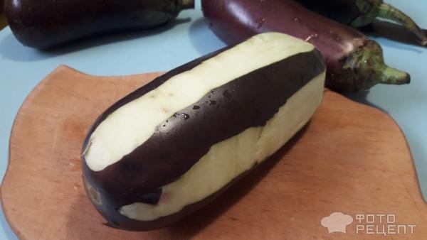 Начинаю готовить традиционный турецкий карныярык — мою крупные баклажаны, отрезаю у них шкурку в четырех местах