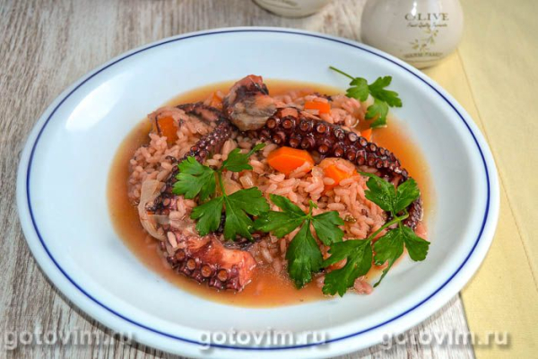 Если для россиян блюдо из осьминога — настоящая экзотика, то в португальской кухне — это обычное рядовое блюдо, приготовлению которого стоит поучиться. Сейчас в местных суперах можно купить осьминогов любого размера. Чаще они охлажденные или замороженные, как правило, уже вычищены. Заморозка идет на пользу осьминогам: они не отличаются по вкусу, но быстрее увариваются. Рецепт риса с овощами и осьминогом прост, но требует соблюдения правил. Блюдо готовят в два этапа, т.к. осьминога надо обязательно отварить.