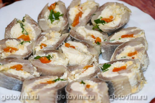 Рулет из селедки с плавленым сырком и яйцом