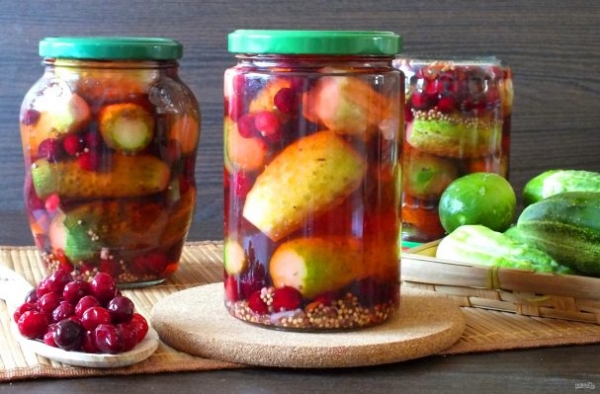 Огурцы с клюквой на зиму