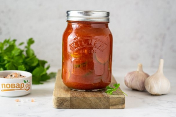 Ниже я расскажу подробнее, как приготовить огурцы в томате на зиму. Огурцы можно использовать любые, даже переспелые. При необходимости просто срежьте кожуру. Если используете маленькие огурчики, то можно разрезать их пополам. По желанию в заготовку можно добавить острый стручковый перец.