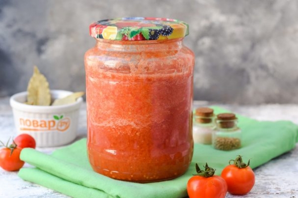Такие помидоры хорошо стоят. Самое главное для нашего рецепта — это тщательно подготовить банки, хорошо их простерилизовать. Помидоры мы просто измельчим и проварим. Если хотите, можете добавить соль и сахар, но мне нравится чистый томатный вкус без добавок. Зимой такие помидоры можно использовать для соусов, приготовления борща, рагу и т.д. Хранить заготовку обязательно в прохладном и темном месте.