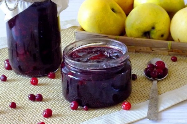 Клюквенно-яблочное варенье понравится тем, кто не любит слишком сладкое варенье. Лёгкая кислинка и терпкость — это основные вкусовые качества лакомства. Количество сахара можно регулировать по вкусу.