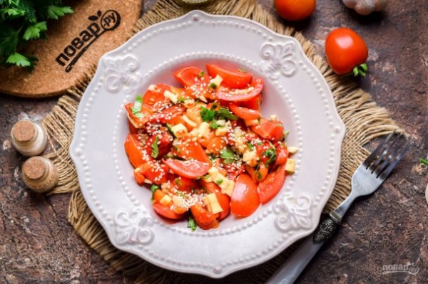 Как приготовить «Салат из печеного болгарского перца с помидорами»