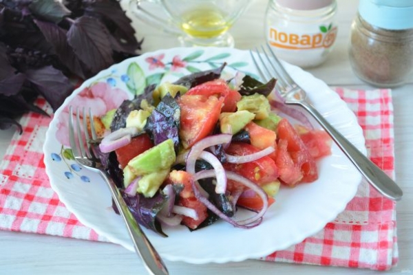 Салат с авокадо и базиликом очень вкусный и полезный, идеально подходит для перекуса и диетического меню. Берите на заметку рецепт!