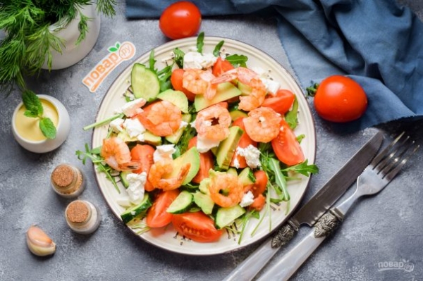 Салат с авокадо и креветками