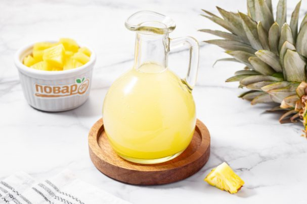 Хочу поделиться рецептом ананасового уксуса, который можно приготовить в домашних условиях. По вкусу он напоминает яблочный или белый винный, у него приятный кислый, чуть терпкий вкус.