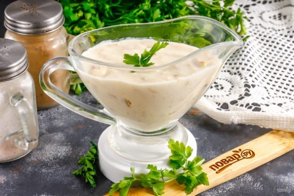 Выложите соус в пиалу, креманку или соусник, подайте к столу горячим или же остудите, накрыв сверху пищевой пленкой, чтобы он не обветрился.