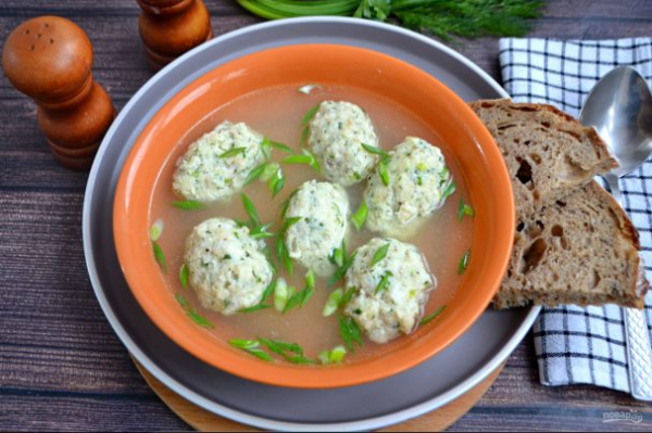 Подавайте рыбные галки с бульоном, слегка посыпав мелко нарезанным зеленым луком. Это очень вкусно!