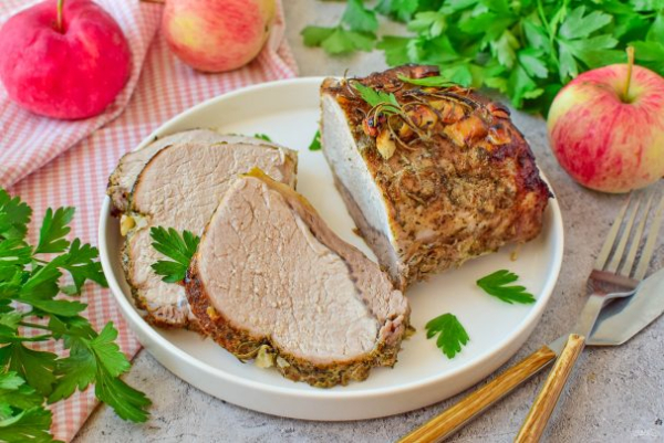 Сочное, вкусное и ароматное мясо можно приготовить в качестве горячего блюда на праздничный или на повседневный стол. Если мясо остудить, то можно сделать нарезку в качестве закуски.