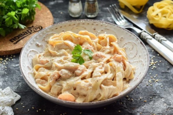 Тальятелле с креветками в сливочном соусе